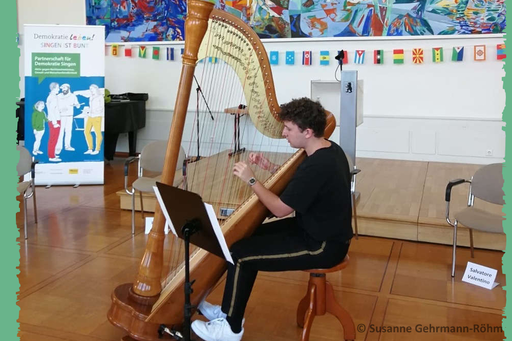 Die Diskussion wurde musikalisch begleitet von Elias Gabele an der Harfe.